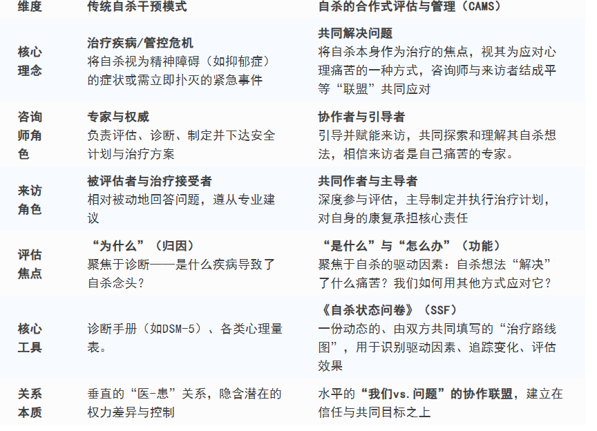 在此背景下,自杀的合作式评估与管理(Collaborative Assessment and Management of Suicidality, CAMS)作为一种循证干预框架,正以其独特的协作哲学和显著疗效,在全球及中国的心理危机干预领域引发深刻变革。它不仅提供了一套专门针对自杀的治疗框架,更代表着一种从“对抗关系”到“共同管理痛苦”根本理念的转变。